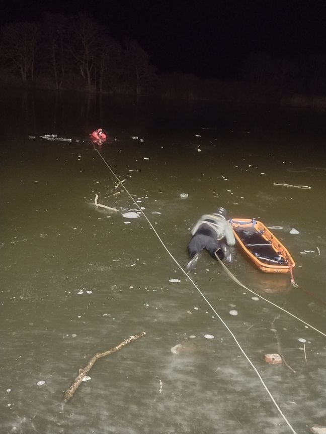 Bei der Übung wurden unterschiedliche Rettungsmaßnahmen auf dem mit einer (nicht tragenden) Eisschicht überdeckten Südensee durchgeführt. Die Eisschicht hatte eine Stärke von ca. 7 cm. Die Außentemperaturen lagen bei – 4°C.